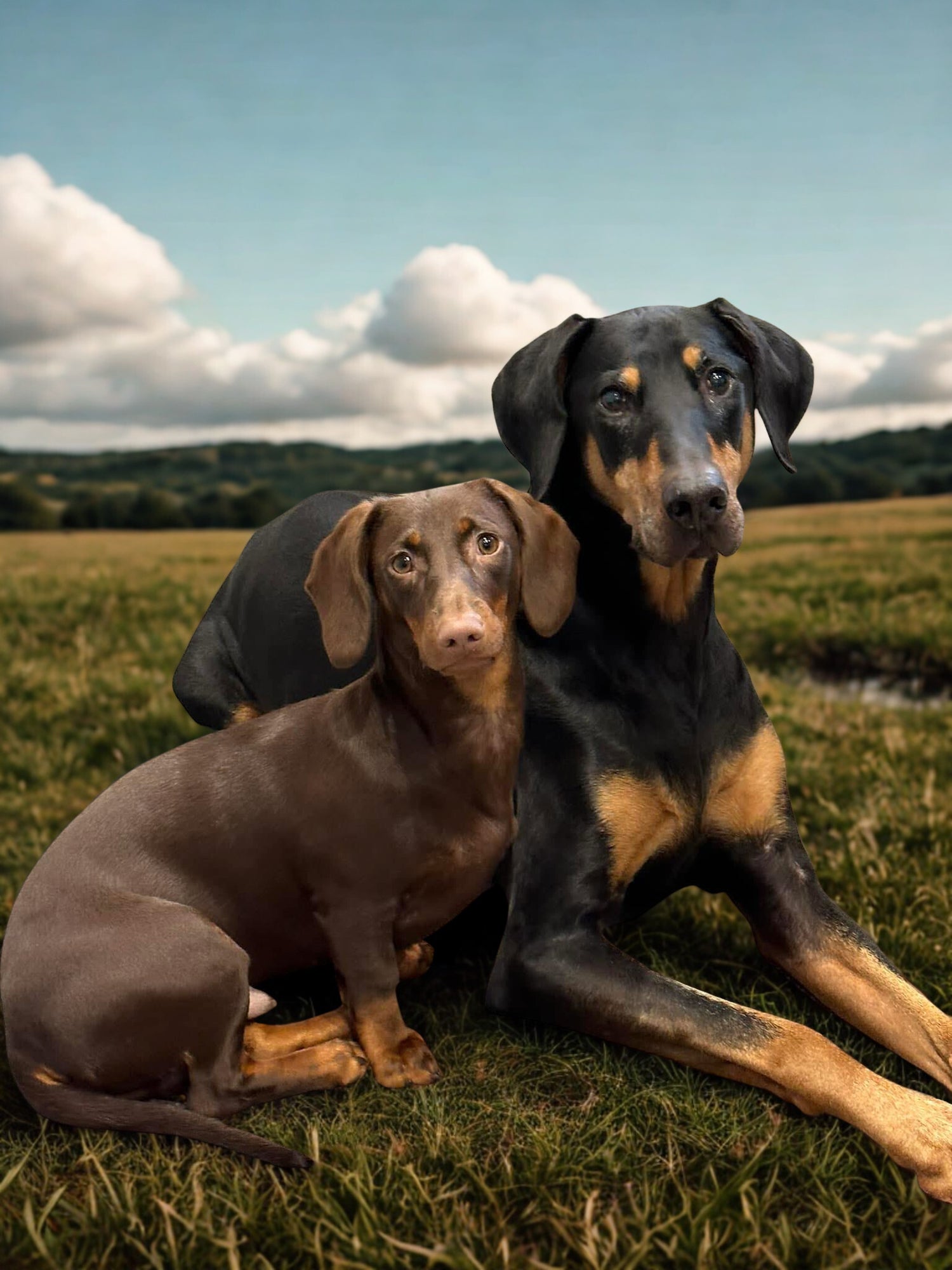 A little later, Django got a new friend. Our first Dachshund, Roo, a beautiful Tweenie. I quickly discovered that Dachshunds, just like Dobermans, are notoriously tricky to fit! Their long bodies and short legs make finding comfortable, well-fitting clothing a real challenge. So, I started creating a special collection designed just for Dachshunds.