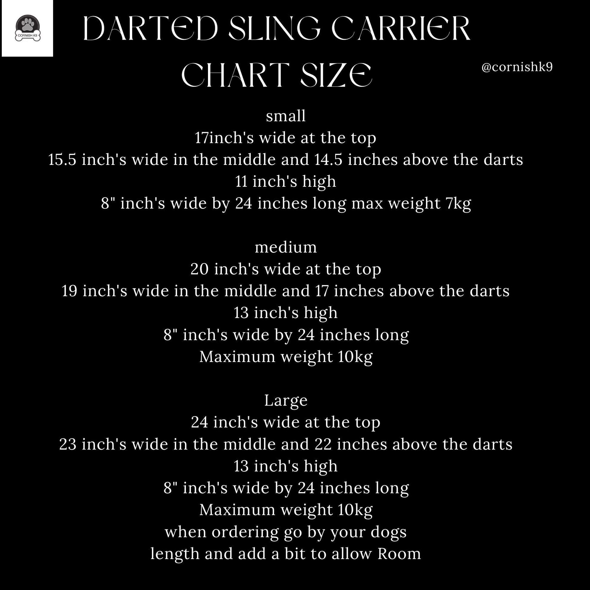 dachshund print Dog SLING The sling is made from rich cotton fabric it’s lined in a grey Brushed cotton About the fabrics used Brushed cotton is the best of both worlds and then some. The material is cozy, but it doesn't trap air. It's ideal for keeping cool during hot summer days , as the breathable brushed fabric wicks away moisture and on the other hand it's also warm enough for dogs who need a little more insulation. Cotton poplin is a breathable material. ... It's one of the softest feeling fabrics & durable. . Making this a lightweight sling carrier which is comfortable to use The sling has darts at the bottom to give it shape. the sling has a tapered strap the sling is designed to sit/ hang past the hip depending on your height it sits just blow my hip the sling evenly distributes the weight of your dog, making it easier than ever to carry them. the sling can be used all day relieving tension in your neck, back, shoulders and arms it has a Swivel Hook inside to keep your dog safe by attaching it to collar or harness the sing sizes small 17inch’s wide at the top 15.5 inch’s wide in the middle and 14.5 inches above the darts 11 inch’s high 8” inch’s wide on the base & side then tapering off the strap is 24 inches long medium 20 inch’s wide at the top 19 inch’s wide in the middle and 17 inches above the darts 13 inch’s high 8” inch’s wide on the base & side then tapering off the strap is 24 inches long large 24 inch’s wide at the top 23 inch’s wide in the middle and 22 inches above the darts 13 inch’s high 8” inch’s wide on the base & side then tapering off the strap is 24 inches long maximum weight 10kg It's incredibly easy to carry around , making it perfect for public places. It’s fully washable at 30 degrees This is made in a pet and smoke free studio This is a made to order item