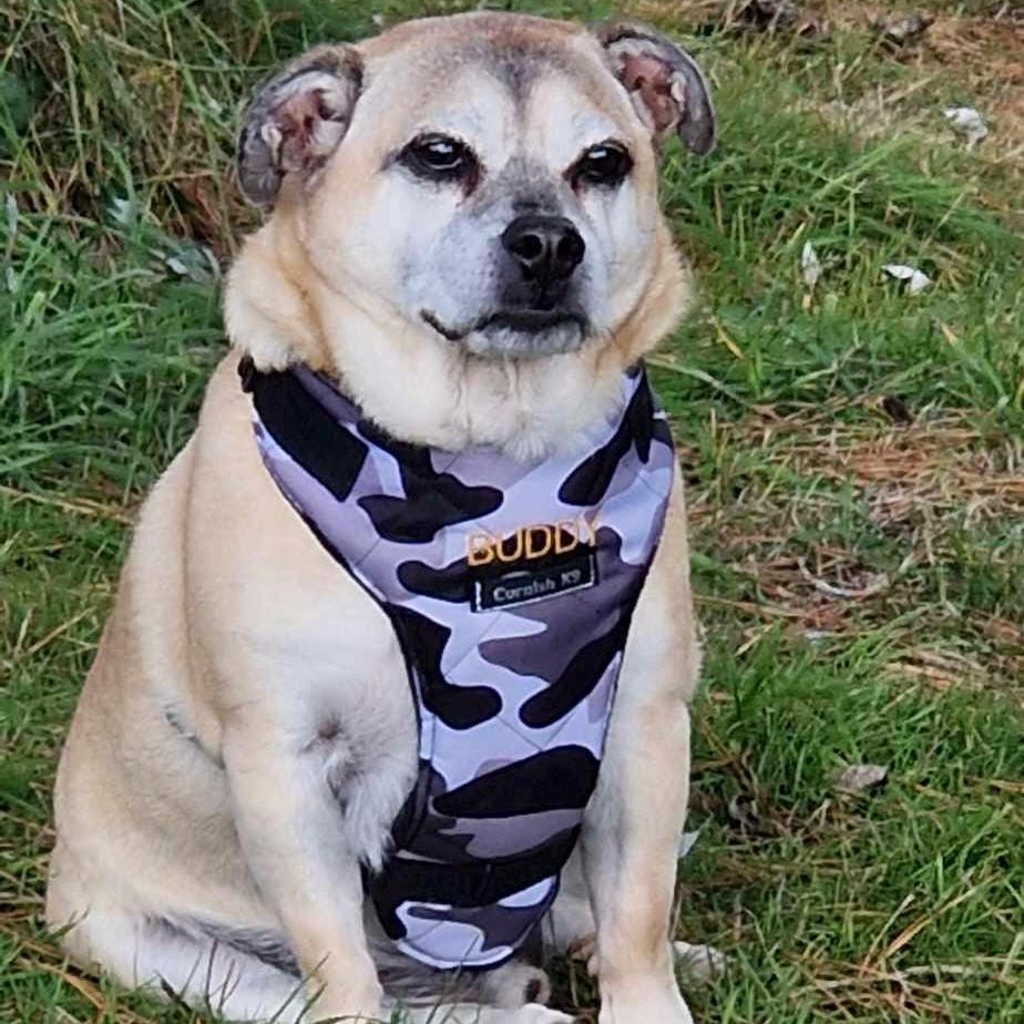 quilted waterproof no armpit rub Dog harness lined in a fleece which is soft on your pooches skin the fleece will match the harness All My harness are padded which makes them more comfortable for your pooch to wear it has a welled d ring on top so you can clip your dogs lead to the harness the harness fastens with adjustable buckle my dachshund in the mustard is wearing a xs The harness is available in these sizes SIZE CHART XS 23-26cm neck girth 32-41 cm SML 27cm - 33cm neck girth 39cm-48cm MED 34cm - 38cm neck girth 50-64cm LRG 39cm -52cm neck girth 62cm-78cm XL 53cm-72cm neck girth 74cm -94cm These harness are fully washable at 30 degrees but do not iron or tumble dry air dry only Please visit my shop to see my other dog harness