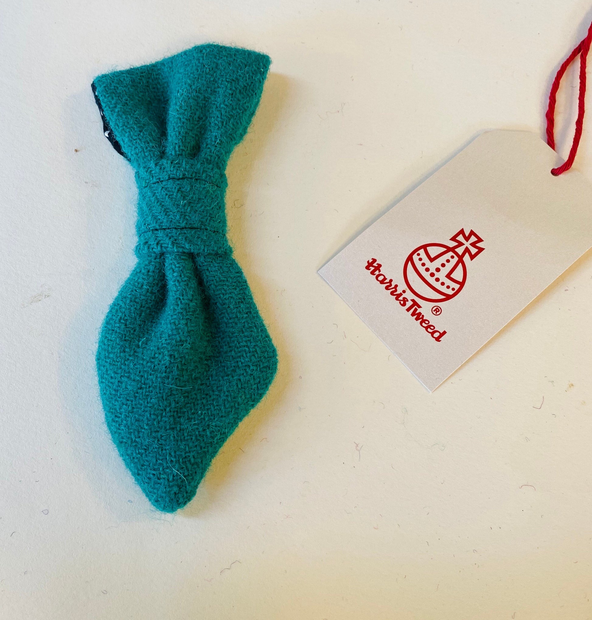 Harris Tweed doggy tie, perfect for the most dapper of dogs Made from pure wool Harris Tweeds sourced direct from the Outer Hebrides, complete with genuine Harris Tweed label Easily slides on to your dog's collar Harris Tweed is a unique cloth only woven in the Outer Hebrides of Scotland and is protected by it's own act of Parliament, for more information please visit, http://www.harristweed.org/ Harris tweed is synonymous with luxury, quality, and style. It has a rich history,heritage and provenance. Harris tweed is used throughout the world by leading designers for clothing , interior design and accessories. All items are made by myself from my pet accessories business called Cornish K9 This is a ready to ship item made by me in a smoke free studio Each tie is 16cm long all have slip on the top so you can attach it to you dogs collar these are for small / medium dogs to it collars 5/8’’ to 3/4’’ Harris Tweed naturally repels water and dirt so a quick brush is all that is needed. If in the event that your item needs washing,hand wash only laying flat to dry. Wipe clean inside of bag with damp cloth.