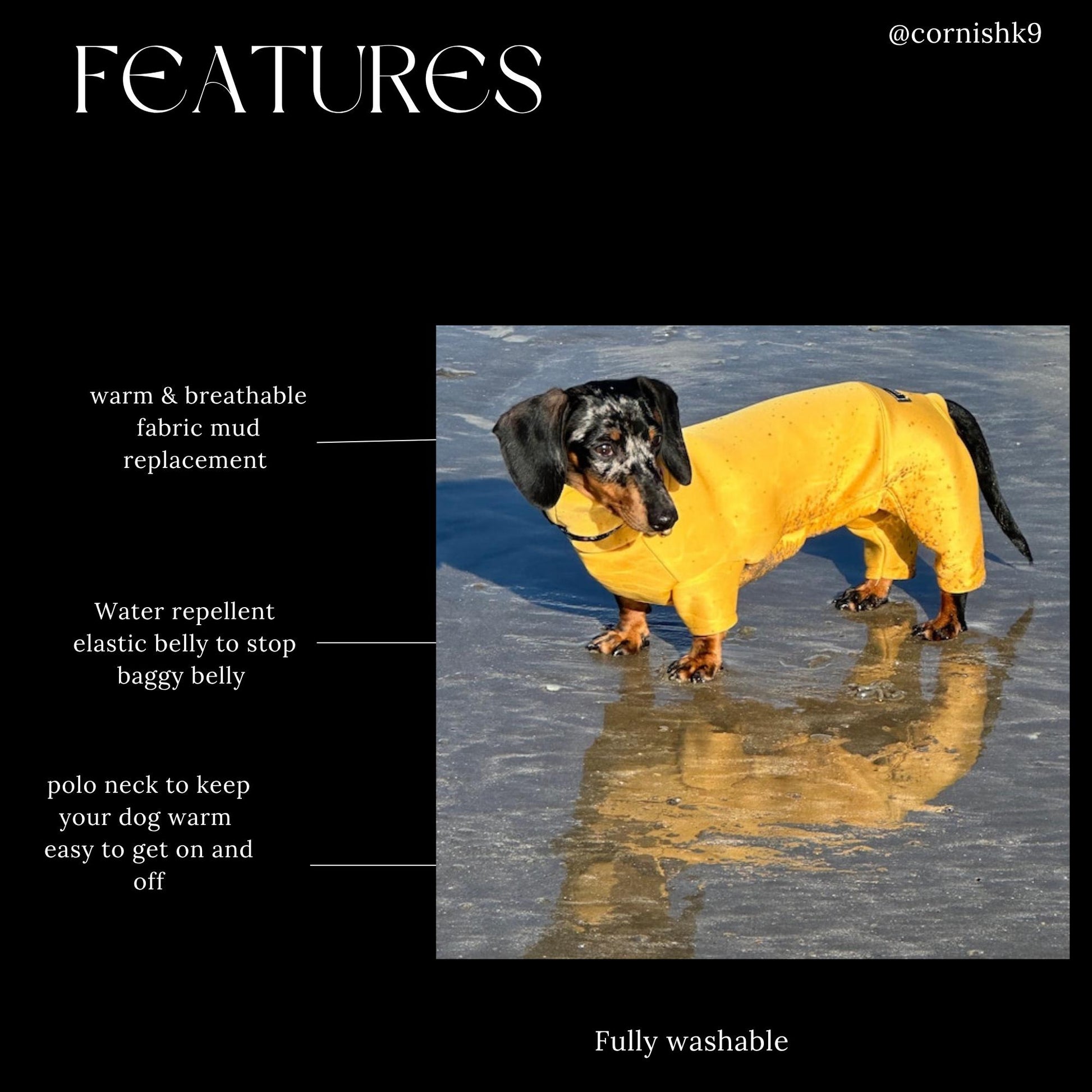miniature dachshund neoprene oneise it has elastic to help give it shape so no baggy belly I can alter the length and girth by a little bit if needed just send me a message first This is a slip on jumper but neoprene is super stretchy so there’s no more struggling to get the oneise on The oneise sizes are from back of the neck to were the tail begins Xs length 32-35cm chest 32-38 neck 22-26cm Small Length 36-40 cm chest 39-45cm neck 25-30cm Medium length 40-45cm chest 44-49cm neck 29-34cm Large length 43-47cm chest 49-54cm neck 33-37cm XL length 46-50cm chest 55-60cm neck 35-40cm All seams have been overlocked to stop fraying please double check before ordering else your item will either be to big or too small for your dog Please note there might be a few centimetres difference in each coat as there all hand cut out When coat needs washing, wash in water only and air dry Neoprene fabric is a soft spongey fabric The fabric also offers a good amount of flexibility and insulation. Approximate Weight: 300GSM for reference my mini dachshund in the photos is wearing a xs Please note the coat may differ in colour slightly depending on your screen resolution and Camera light Please visit my shop to see my other dog harness and dog coats