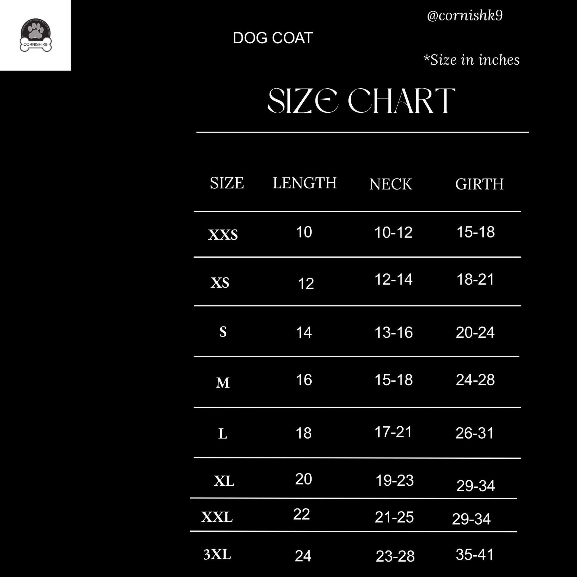 heavy duty waterproof canvas Dog coat lined In fleece The coat has a Harness hole so you can clip your dog lead to This is a waterproof/ shower proof dog coat the coat fastens underneath with a Velcro the coat is Stitched with Strong bonded nylon thread which is rote proof This Coat comes in Xxs from base of neck to base of tail 10” X Small from base of neck to base of tail 12” Small from base of neck to base of tail 14” Medium from base of neck to base of tail 16” Large from base of neck to base of tail 18” Xl from base of neck to base of tail 20” XXL from base of neck to base of tail 22” 3xl from base of neck to base of tail 24” Please note there might be a few centimetres difference in each coat as there all hand cut out The waterproof canvas naturally repels water and dirt so a quick brush is all that is needed. If in the event that your item needs washing,low heated wash only air dry This is a made to order item made by me in a smoke free studio Please note the coat may differ in colour slightly depending on your screen resolution and Camera light Please visit my shop to see my other dog harness and dog coats