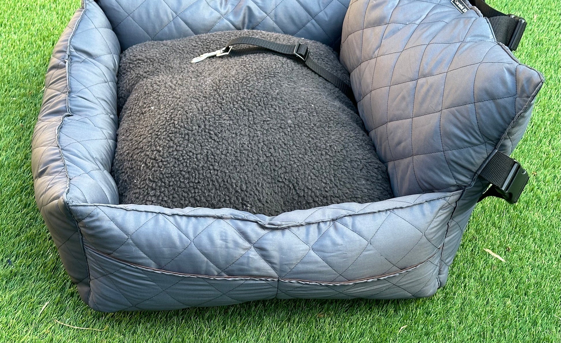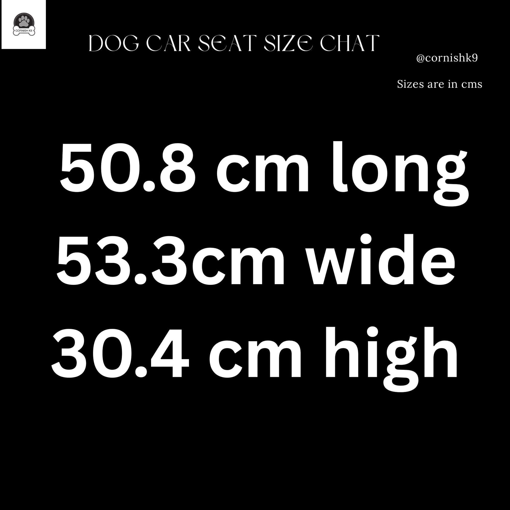 Quilted waterproof canvas Dog car seat carrier This dog seat carrier is A piece of luxury While being super comfortable The outer bed is filled with 6oz polyester wadding giving it maximum support This fabulous carrier will keep your dog nice and safe while being comfortable. The outer fabric is made from waterproof quilted fabric making it super easy to maintain it will just need a wipe clean, but if it needs to be washed wash at 30 degrees no not bleach do not bleach air dry flat The base is made from The base is made from a black Anti-Slip fabric The cushion is made from Sherpa fleece to give the upmost comfort the inner cushion is made from cotton canvas and filled with 6oz wadding The cushion has zip on the back making it easy to remove the inner cushion so you can wash the outer cover It has head rest adjustable buckle straps made from heavy duty 38mm polyurethane webbing Single size has 1 head rest strap the carrier also has a adjustable strap in the middle so it can be wrapped around the back of the seat if used in the front or on the back seats It has adjustable tigger clips to keep your pet safe by clipping them to the Collar or harness on your pet There is slip pockets on the sides so you can keep leads water bottles nice and safe. A seat bealt strap can be add for extra safety on the back of the seat There is 6 Sherpa colours to choose from for your inner cushion This has been made using high quality fabrics so your pet is guaranteed support and comfort while you have the reassurance of durability and safety . single size 50.8 cm long 53.3cm wide 30.4 cm high This is a made to order items are all made by my self in a smoke free studio .
