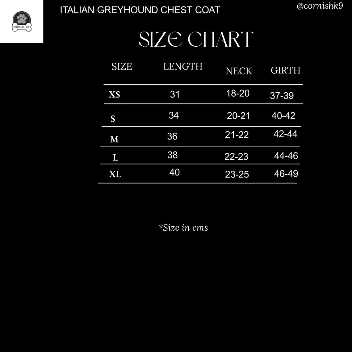 This Coat comes in these sizes ,but I can add a few cm’s to the length if needed